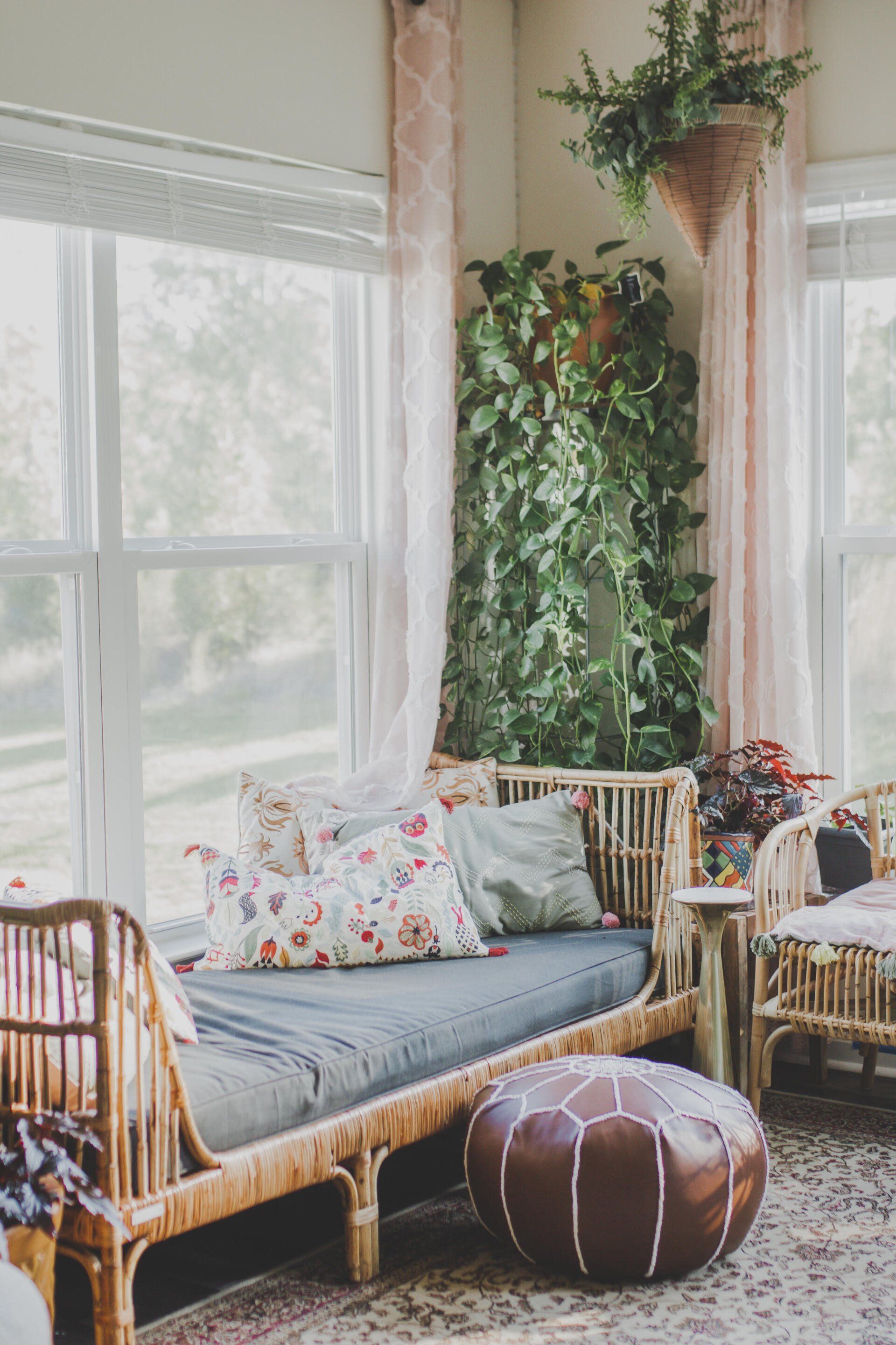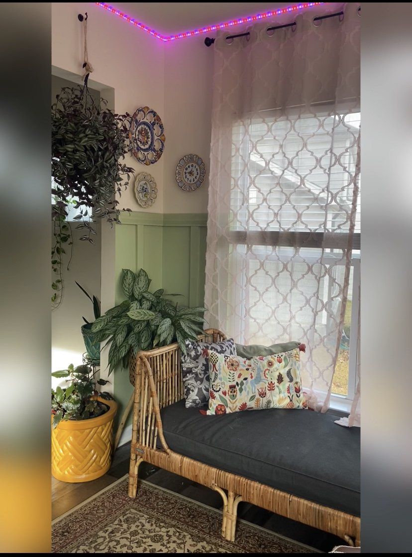 I also added shelves to keep pots and decorative items. I used 1 X 6 boards, did miter cuts of 45 degree angle and joined them. Used these 3" brackets from Amazon on the base to hold the shelf : Book Shelves . I did not want to paint the shelves so I added teh walnut finish varnish to it and Voila!!! My Boho Sunroom is ready!