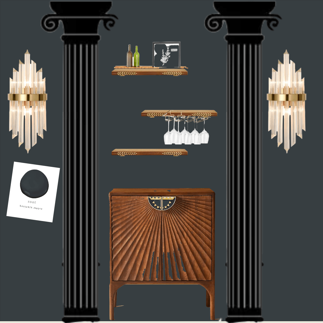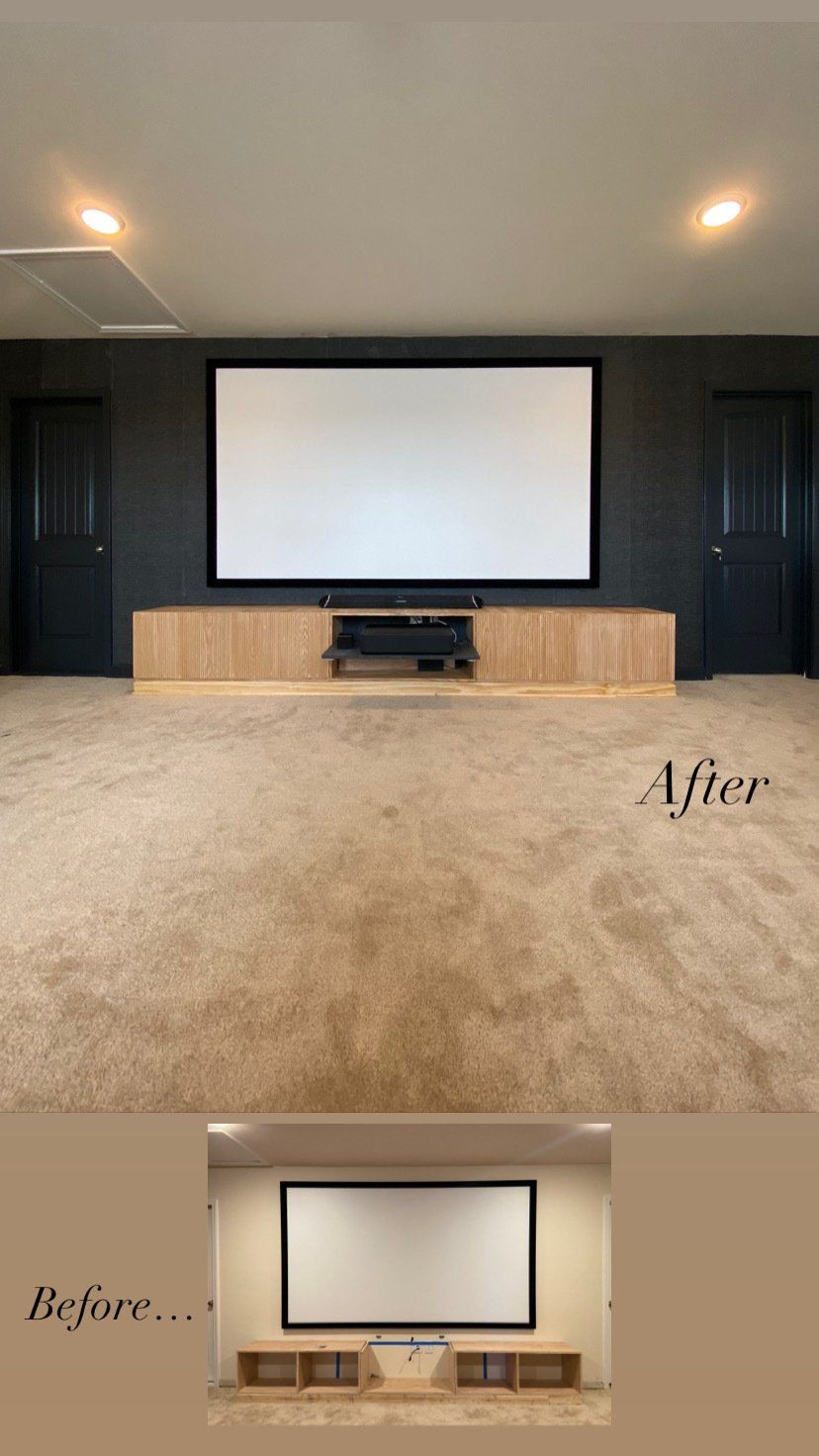 Electricals are going on 2 walls in the room. These walls are to the left and right of the projector screen. Wall 2 is on the right facing the projector wall and that wall will have the dry bar with pillars, sconces and lighted crown molding.