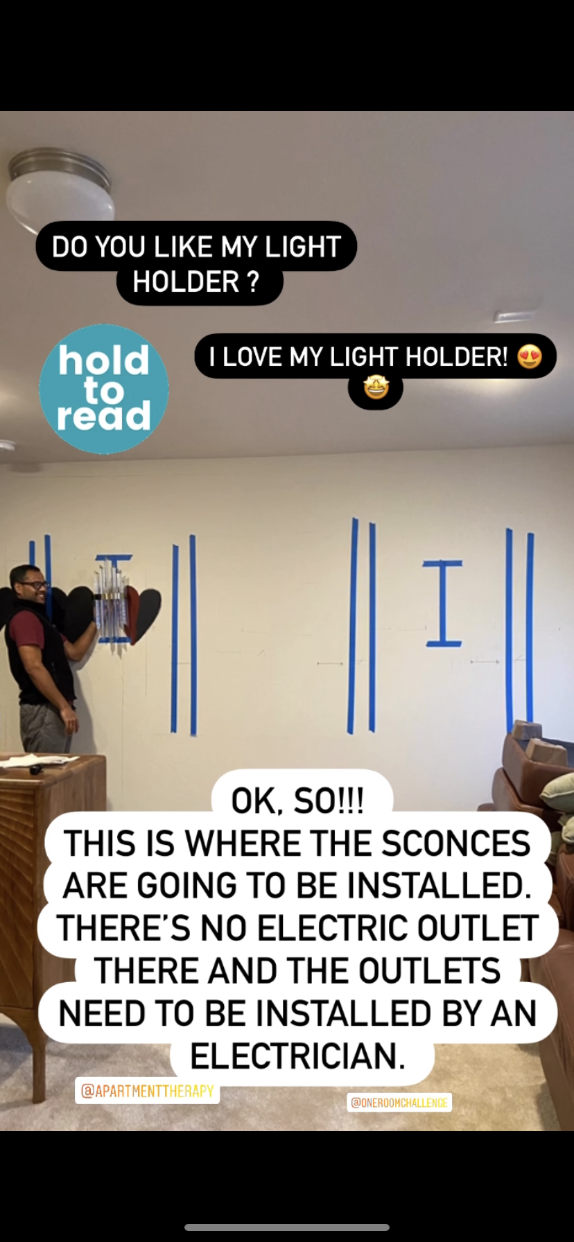 We are cutting holes into the walls to extend the wires to these sconces and adding a switch to the focus light.