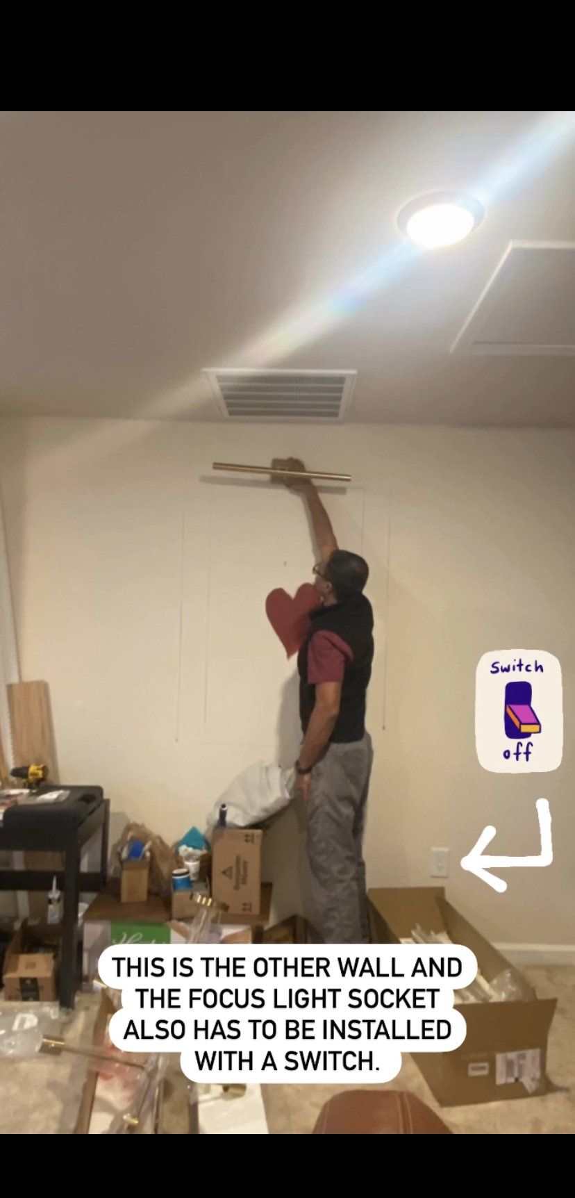 We need 2 electrical sockets for the sconces (wall2 ) and 1 for the focus light (wall 3)
